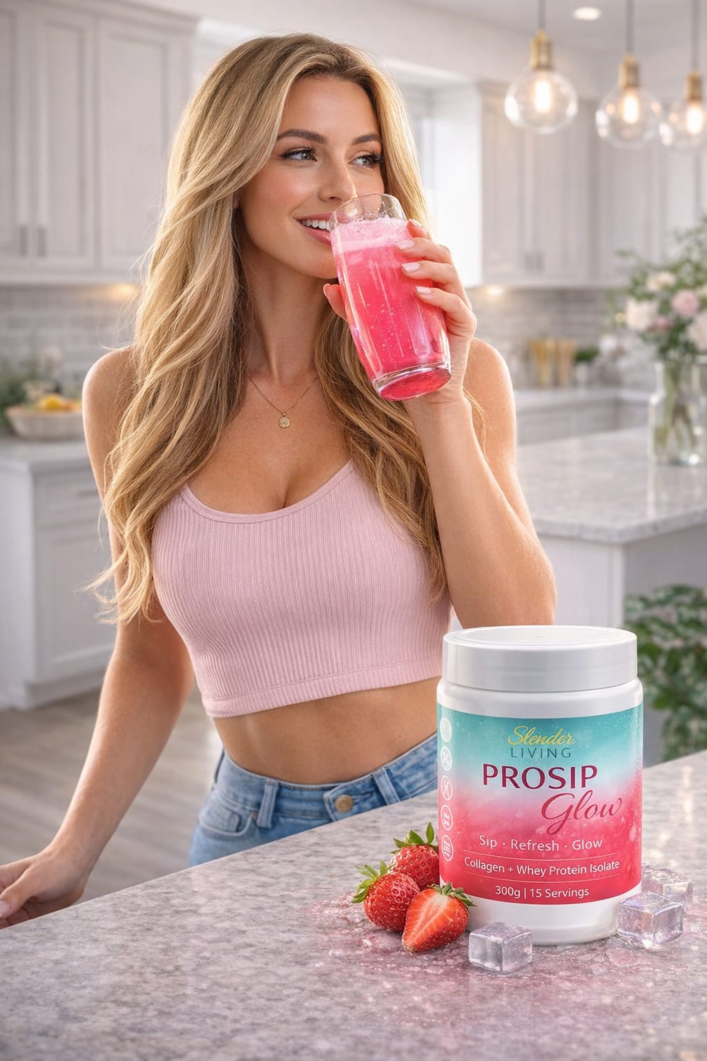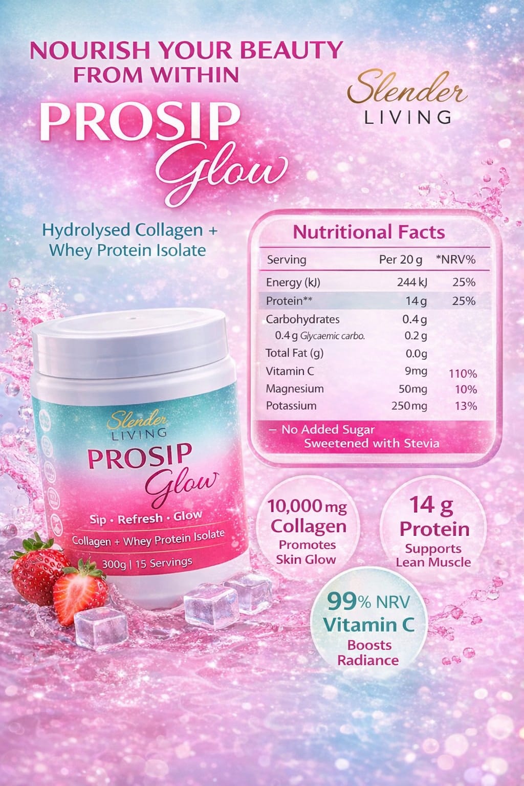 ProSip Glow is a refreshing protein water designed to help you increase your daily protein intake while staying hydrated and glowing.